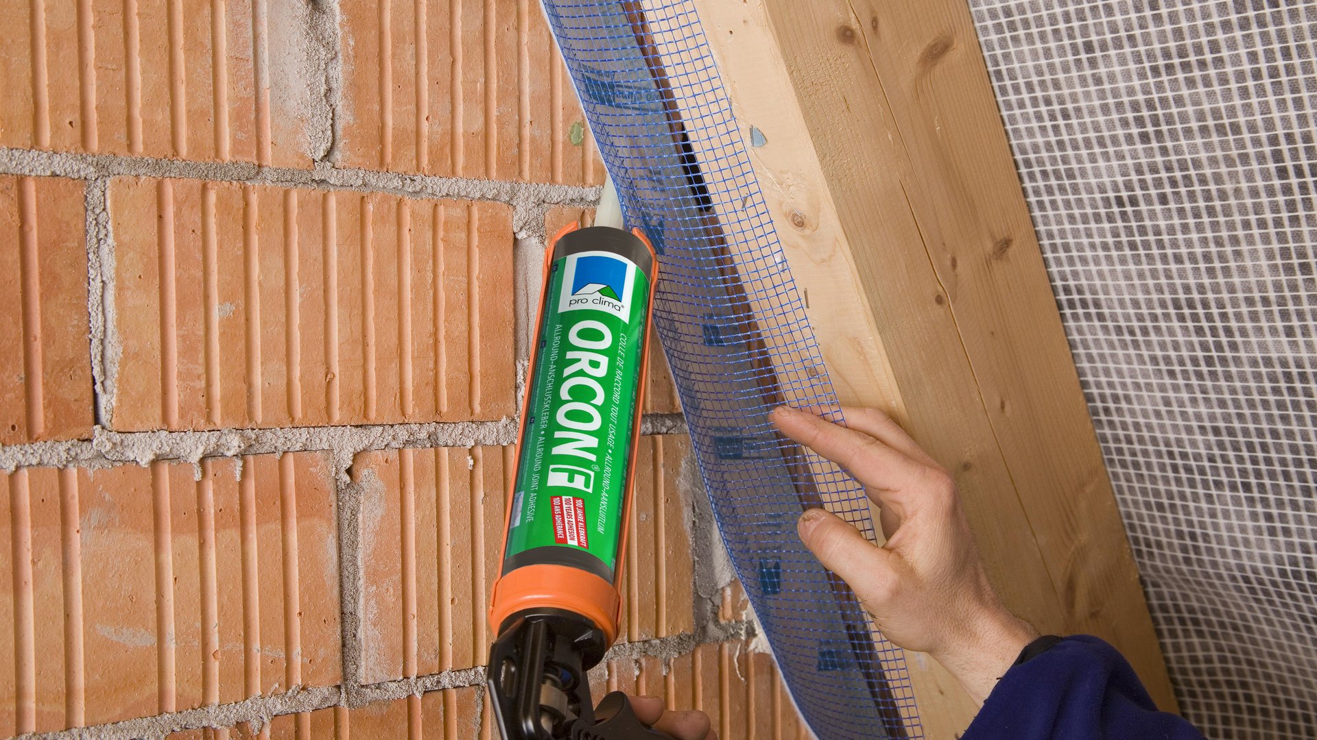 Vlies met ORCON F of ORCON CLASSIC puntsgewijs op het metselwerk vastzetten.