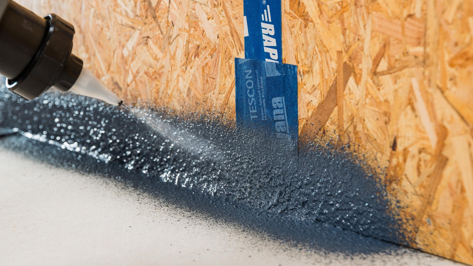Wanneer stootvoegen tussen houten platen luchtdicht zijn gemaakt met TESCON RAPIC, moet er nabij de vloer een stuk TESCON VANA over de TESCON RAPIC worden geplakt. Plak de TESCON VANA direct op de houten plaat.